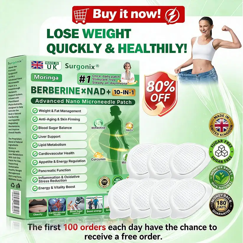 ย was developed through more than 20 years of research by a multidisciplinary team of over 30 experts. Each patch incorporates an ultra-fine microneedle architecture measuring approximately one-seventh the thickness of a human hair, designed to ensure a smooth and virtually painless application. The formulation contains highly concentrated natural bioactive compounds, up to 20-fold higher than conventional market levels, including Moringa and Berberine, which act synergistically to support healthy glycemic responses, appetite regulation, and lipid metabolism, thereby promoting gradual and sustainable weight management. Enriched with NAD+, the patch further supports skin firmness and structural resilience during body-weight fluctuations, helping maintain a lean appearance without compromising comfort or aesthetics. Additional high-efficacy components contribute to the support of immune function, digestive health, gut balance, womenโs health, daily energy levels, and fatigue reduction, collectively promoting a more youthful and resilient physiological state from within. This product meets the quality standards of the UK Health Discussion Organization and requires no injections. Based on scientific principles, it provides a safe and comprehensive approach to effectively control weight and promote long-term metabolic health, designed to work in harmony with the body rather than against it.